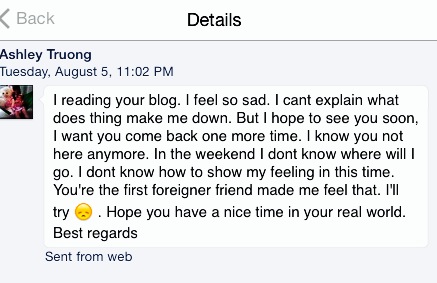 I then got this message from a Vietnamese girl I hang out with. How sweet!