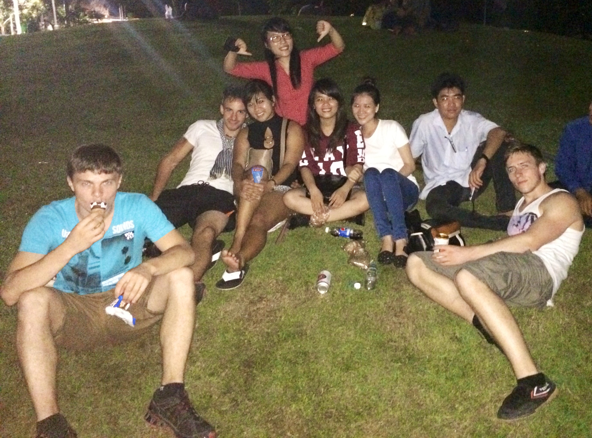 Since it’s our last night in Ho Chi Minh City, Ashley and 2 of her Vietnamese friends took me and the 4 German guys she introduced to me (Stephan, Stefan, Philipp and Dmitrij) to District 7. We ate dinner then headed our way to Anh Sao Bridge which is one of the famous dating place in Vietnam. The place was beautiful and seductive but it was too dark for my phone to capture good pictures.