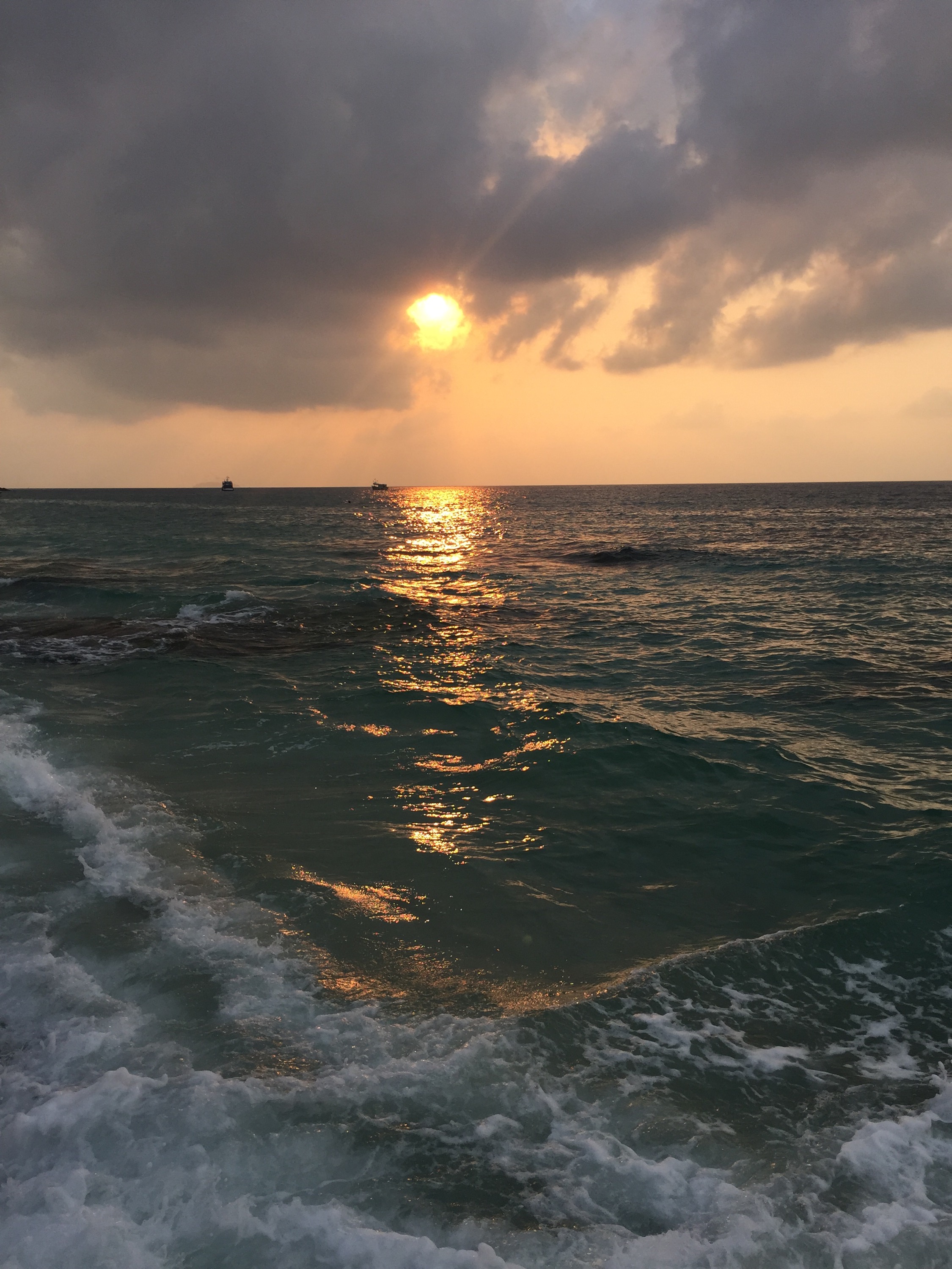 I woke up at 5:40AM to see the sunrise but it was still dark. I was alone in the shore. I got to watch the moon and the stars while listening to the ocean waves.