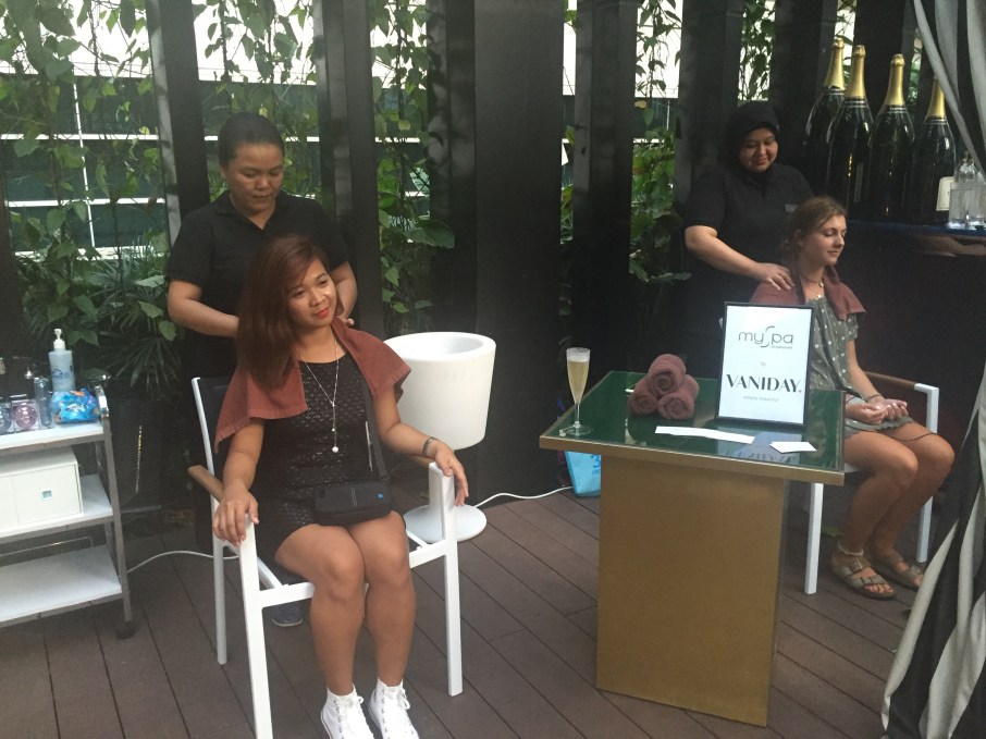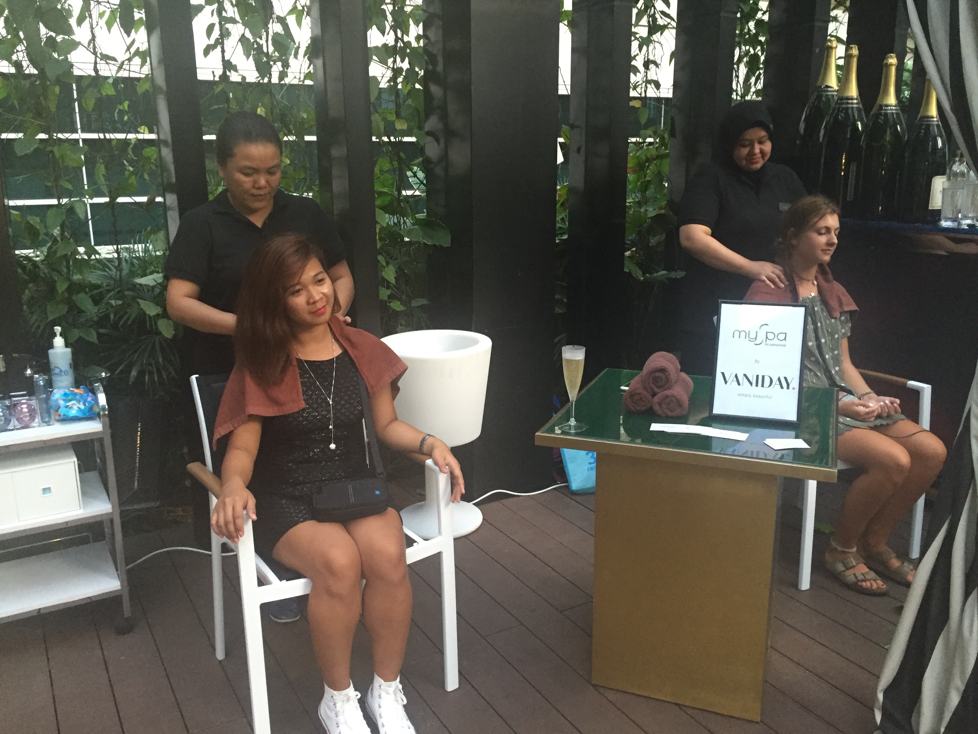 As we claiming our free champagne, the people from myspa offered to give us 15 minutes massage since they were free.